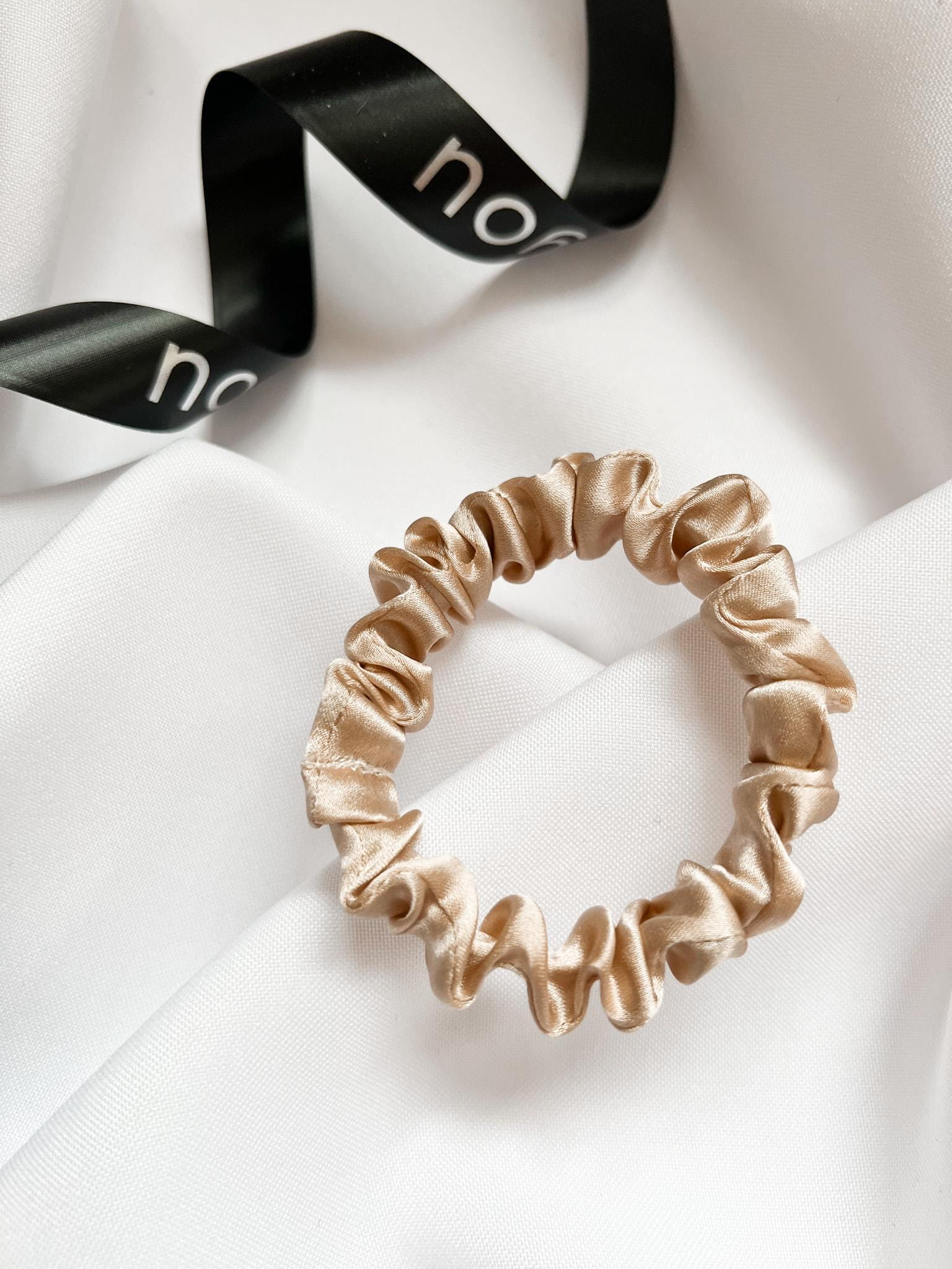 Mała jedwabna gumka do włosów GOLDEN CREAM