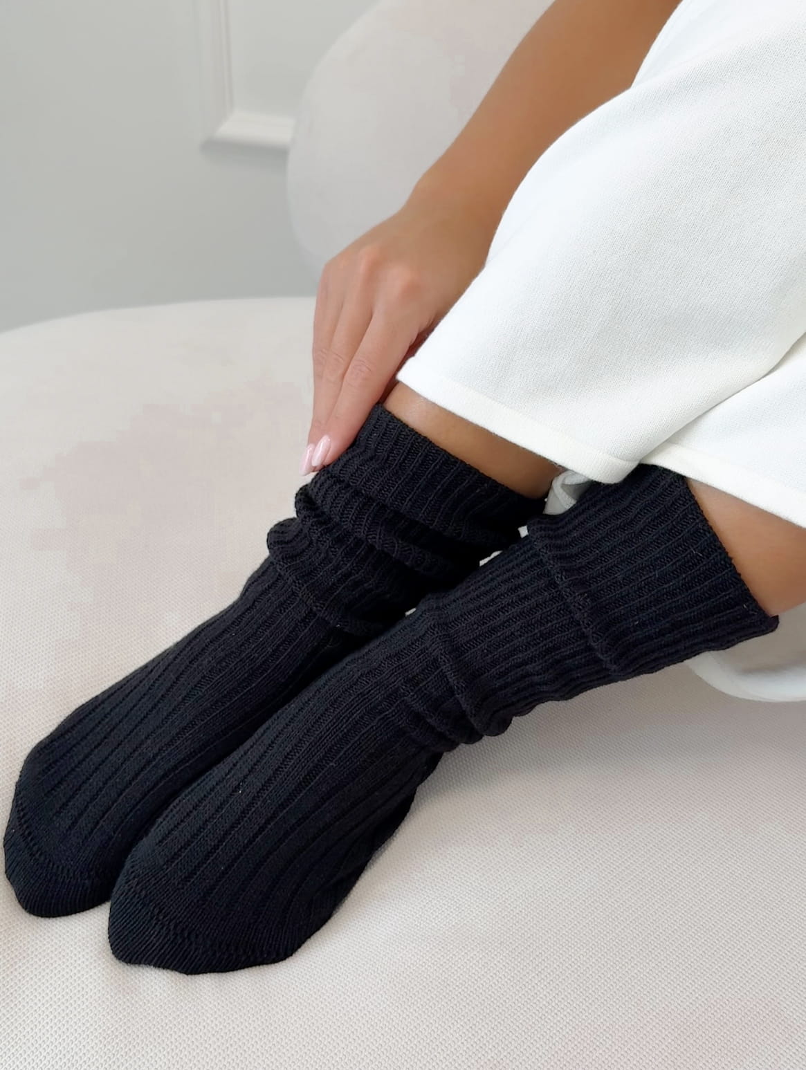 Stylowy domowy look – nasze skarpetki z merino wyróżnia lekki prążek i subtelna struktura włókna pozwalają stworzyć wygodny, a jednocześnie modny zestaw do noszenia w domu i nie tylko!
