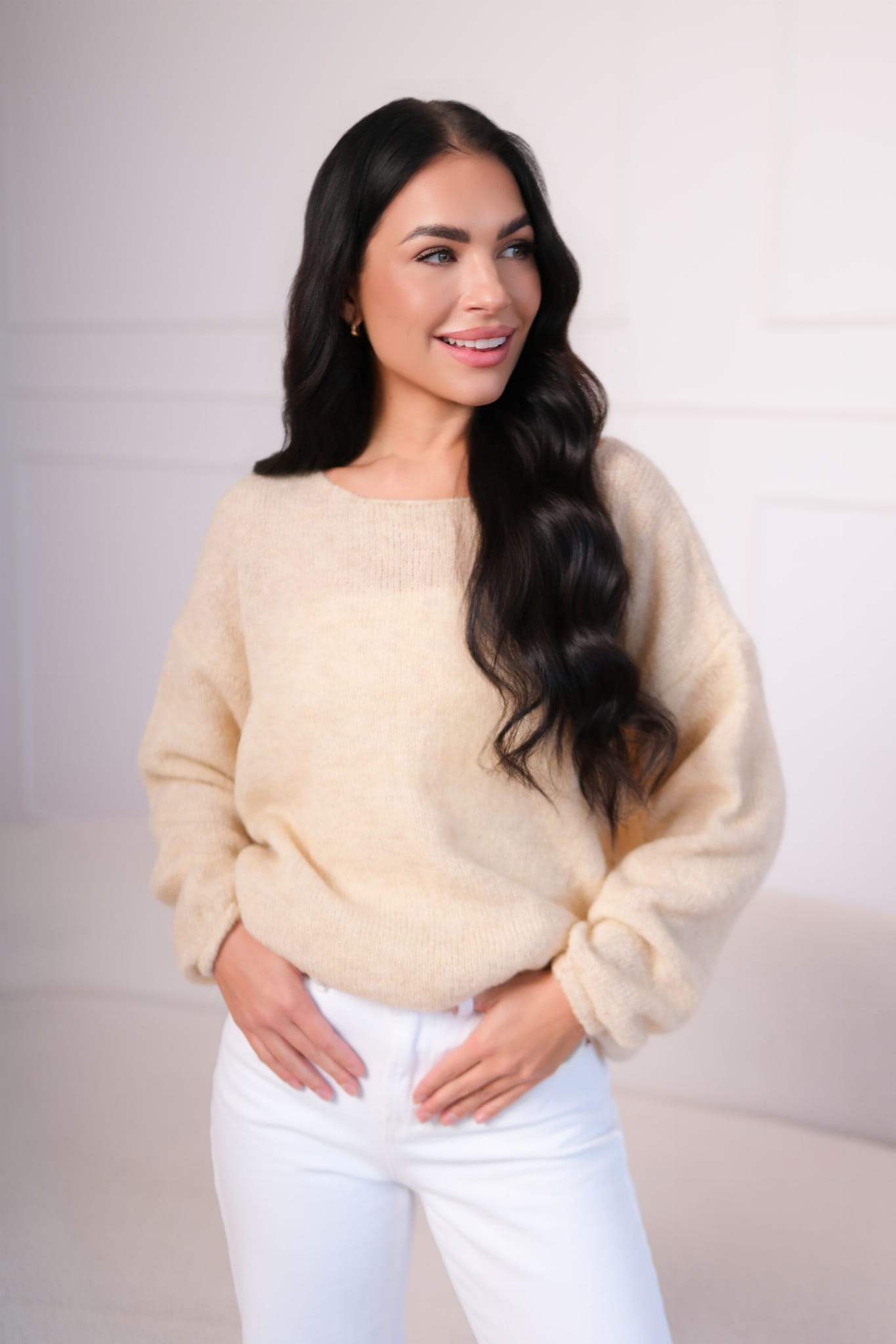 Klasyczny odcień naszego swetra merino to ponadczasowa baza garderoby. Pasuje do jeansów, spódnic i eleganckich spodni. W duecie z delikatną biżuterią wygląda kobieco i subtelnie, a w zestawieniu z trampkami i plecakiem – nonszalancko i nowocześnie. Sweter merino moher to idealny wybór dla kobiet, które lubią rzeczy piękne i praktyczne zarazem.