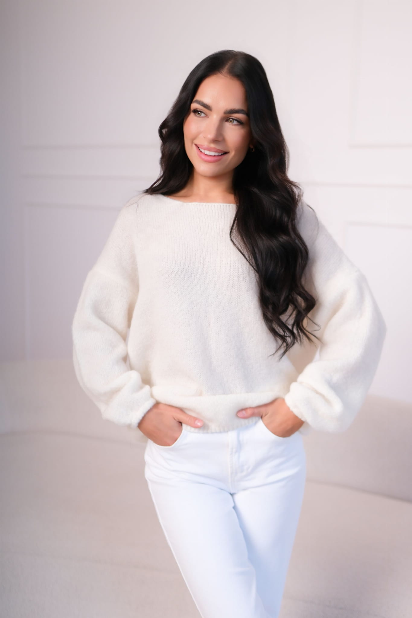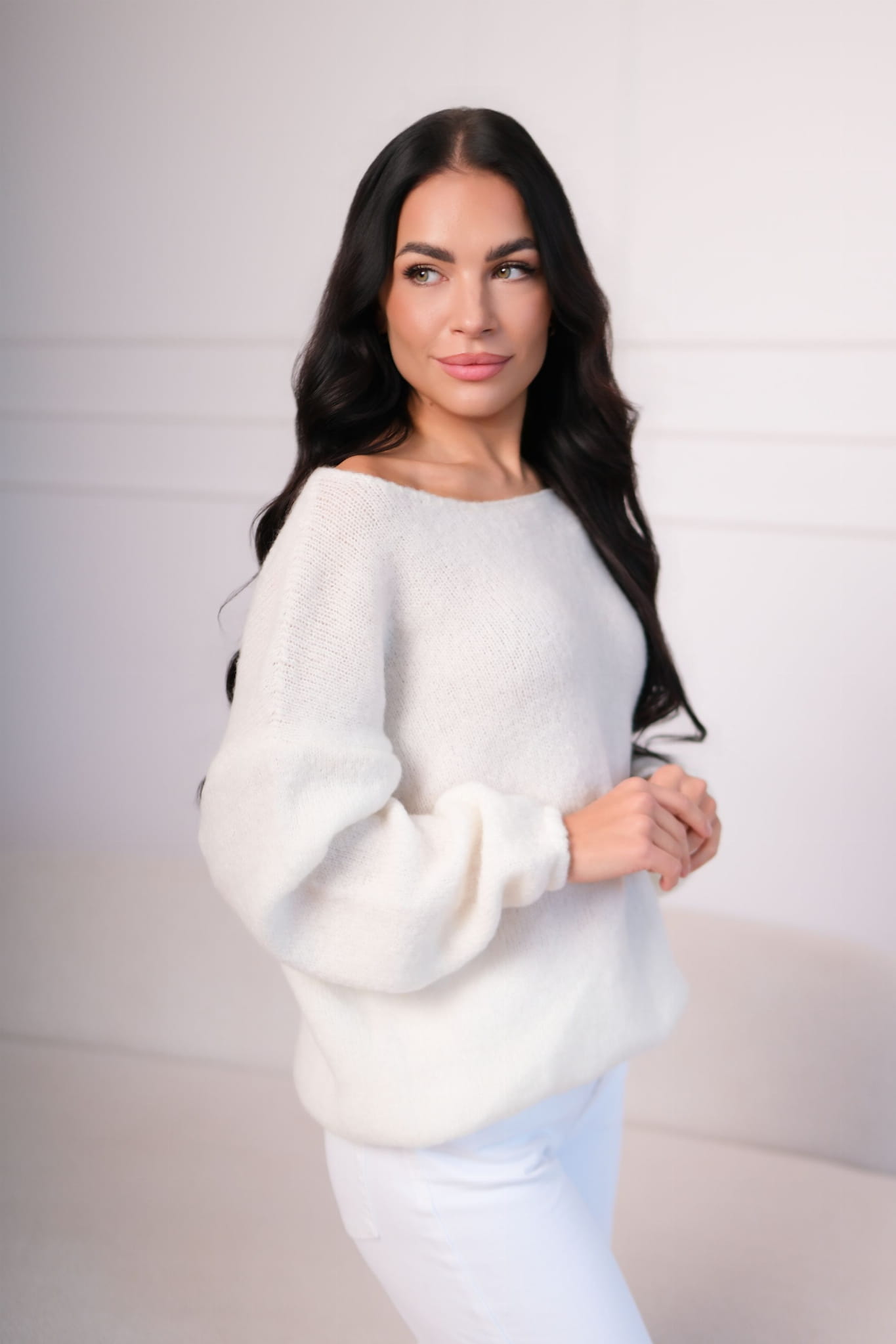 Sweter z wełny merino i moheru ECRU wkładany przez głowę